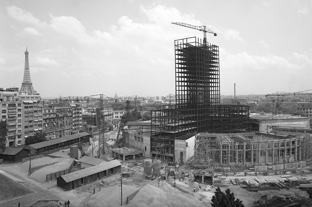 La construction de la Maison de Radio France à Paris dans le 16e arrondissement © Archives Radio France