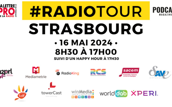 La deuxième étape du RadioTour 2024 s'arrêtera à Strasbourg le jeudi 16 mai à partir de 08h30 à l'Hôtel Athena Spa, à quelques pas du Zénith de Strasbourg, Une journée pour le plein de bonnes idées autour de nombreux partages d'expériences en lien avec "Le futur de la proximité".