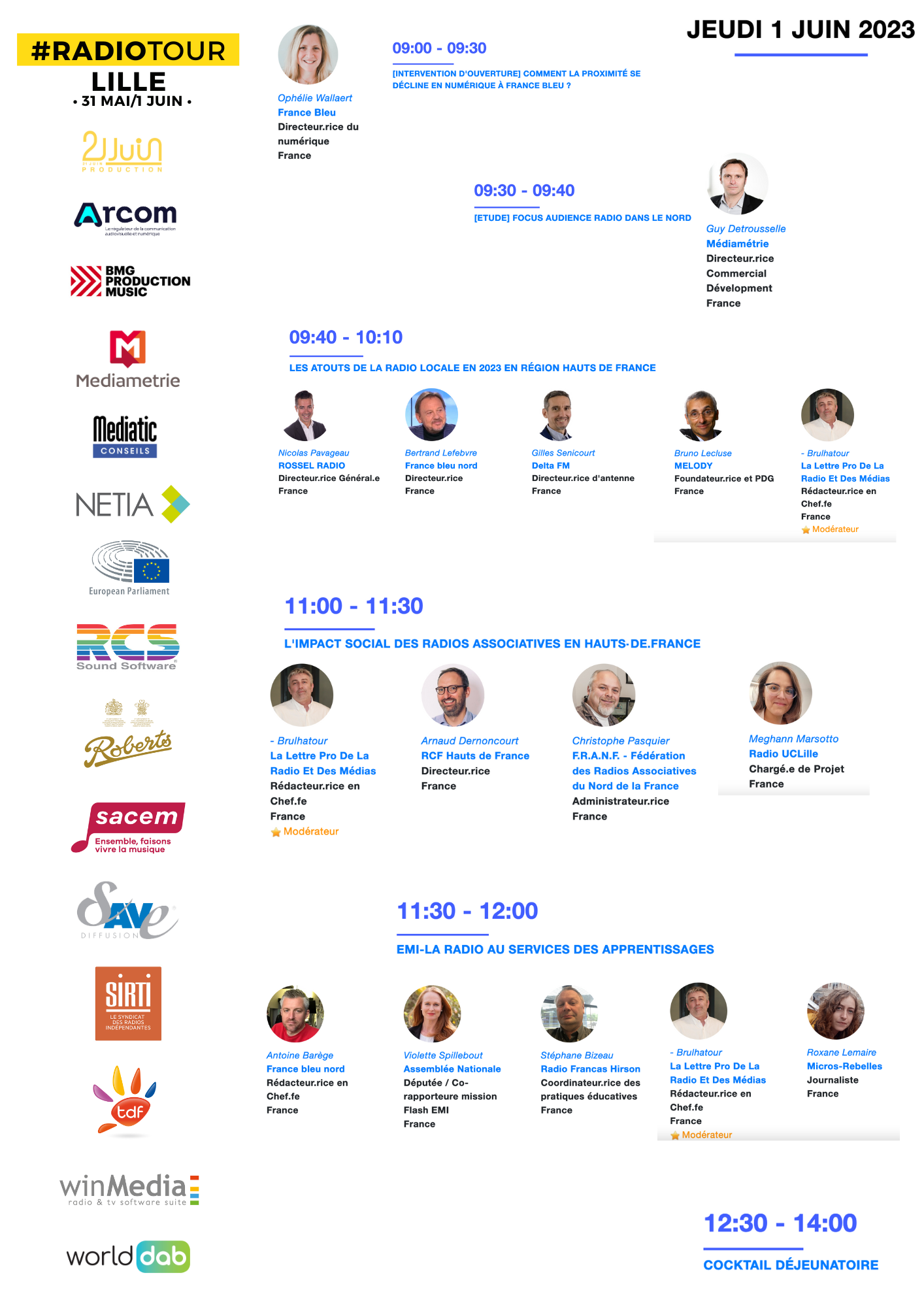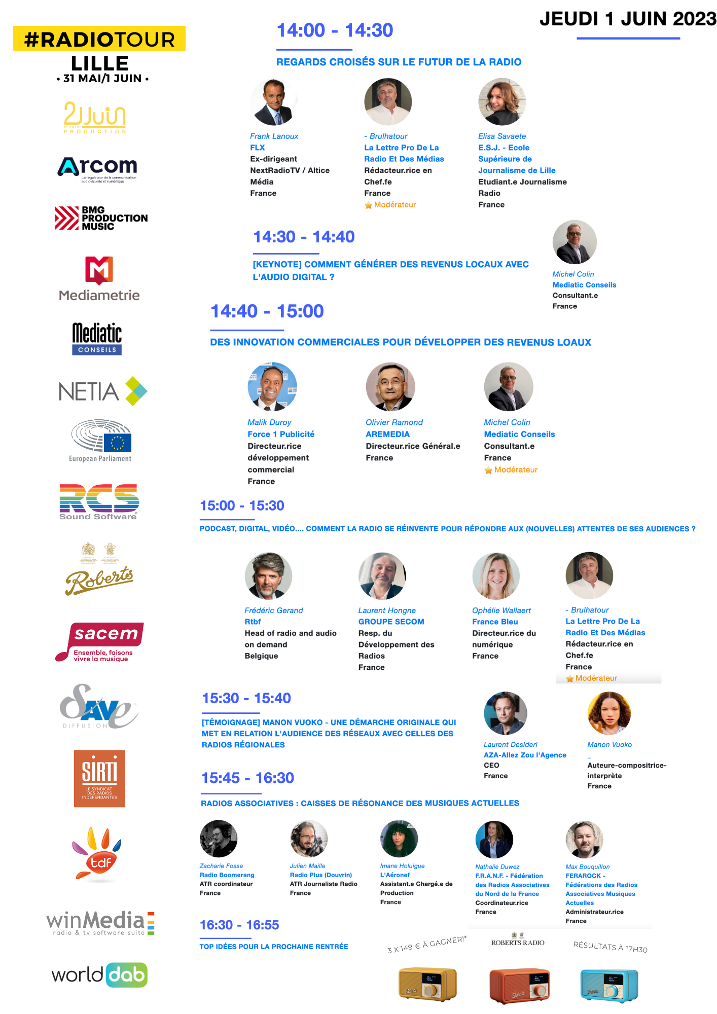 Le lendemain, le jeudi 1er juin, une quarantaine d'intervenants de la radio et de l'audio digital partageront leurs visions de la radio régionale de demain avec de nombreuses animations gratuites ouvertes à toutes les radio de la région