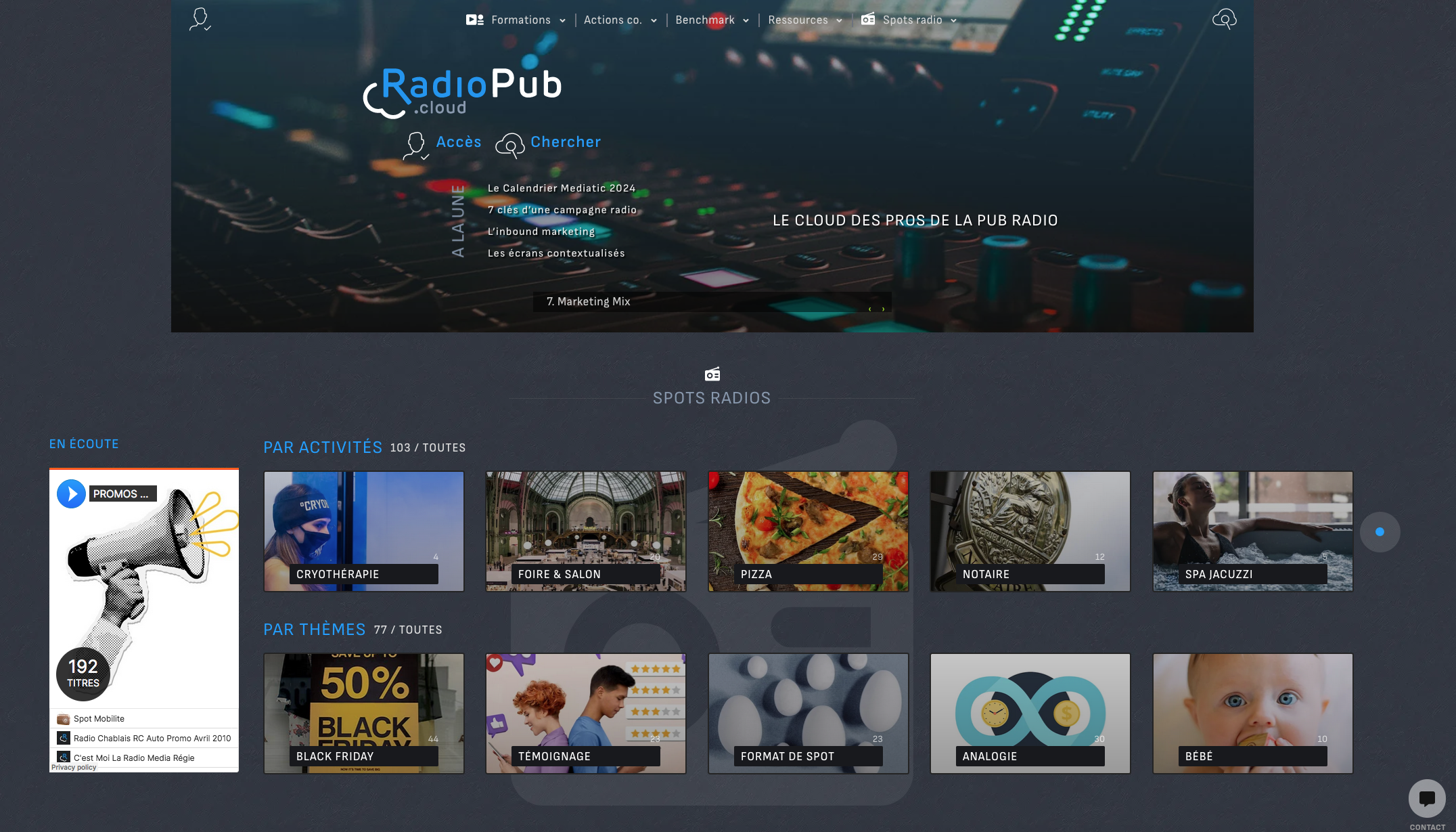 L’accès à Radiopub.cloud est illimité durant un an. Les abonnés peuvent consulter et télécharger tous les modules à leur guise. La plateforme contient également tous les modules des formations à distance connues de nombreux commerciaux radio ; "Vendre mieux et plus de publicité radio", "La commercialisation Radio & Digitale" et "Les fondamentaux de la création publicitaire radio".