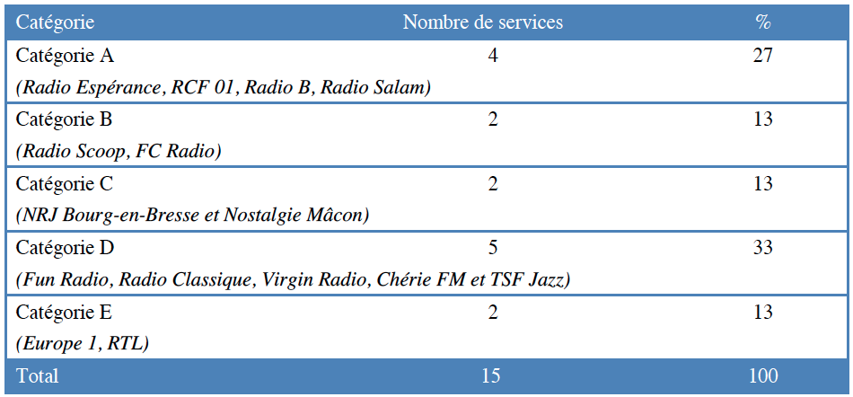 Dans la zone de Bourg-en-Bresse, deux fréquences FM pourraient faire l’objet d’un appel aux candidatures : une fréquence dont l’autorisation est arrivée à échéance le 6 janvier 2015 (la 100,6 MHz) et une fréquence nouvelle, la 106,5 MHz1, en contrainte d’allotissement avec la fréquence 106,5 MHz de Villefranche-sur-Saône, sur laquelle le Conseil envisage également de lancer un appel aux candidatures.