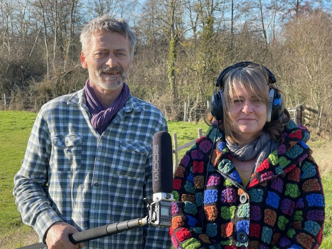 Sarah Denis (à droite) accompagnée de Christophe Lecuyer, sur l'enregistrement du podcast Champs Libres. Photo © Stéphane Marchand