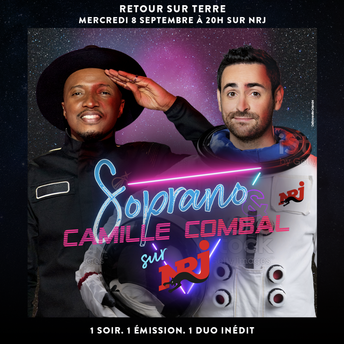 Pour son retour sur Terre et la sortie de son septième album, "Chasseur d’étoiles", Soprano animera avec Camille Combal une émission sur NRJ, ce mercredi 8 septembre, de 20h à 22h. "Un grand retour pour l’animateur après plus de 450 jours loin de la radio sans toucher un micro ! Un soir, une émission, deux heures, un duo inédit" précise la radio de NRJ Group.