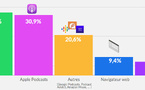 La répartition des téléchargements de podcasts par plateforme selon le bilan annuel de l'ACPM : des données en pourcentage des écoutes sur les principales applications et services © ACPM