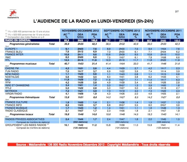 Téléchargez le communiqué de Médiamétrie 126 000 Novembre-Décembre 2012