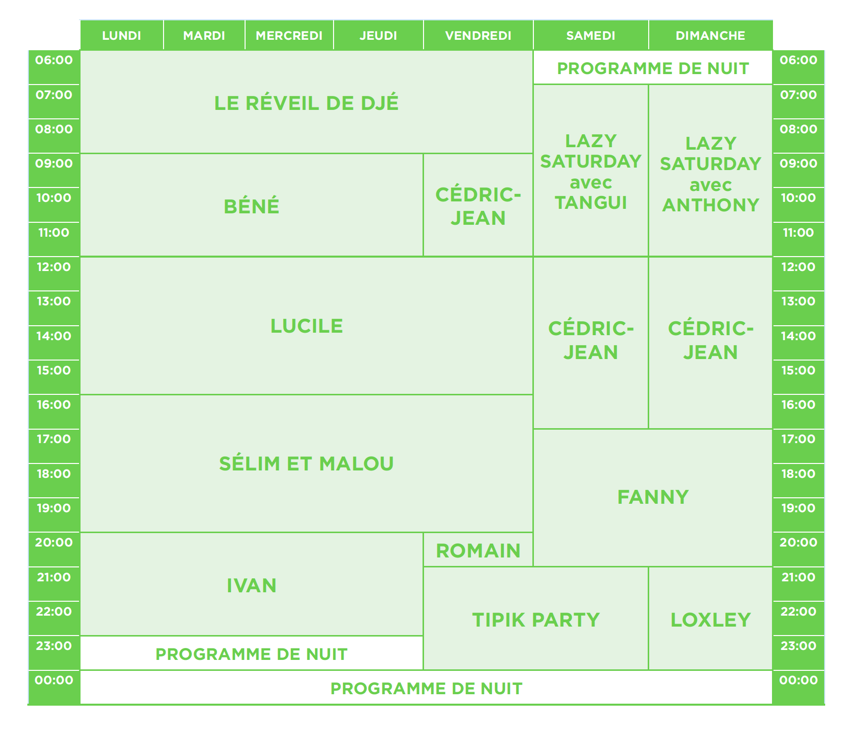 En début de soirée, le duo Sélim & Malou accompagnera les auditeurs au retour du boulot. En fier héritage de Pure, la musique restera toujours au centre de la radio, en proposant une playlist actuelle avec les sons du moment, des découvertes et des morceaux qui fleurent bon la nostalgie des années 90 et 2000.