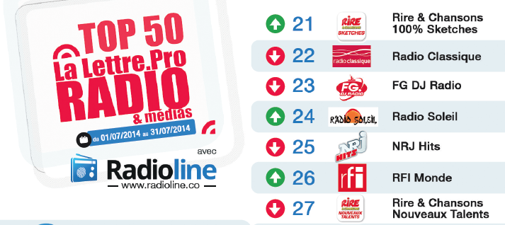 Top50 La Lettre Pro - Radioline de juillet 2014