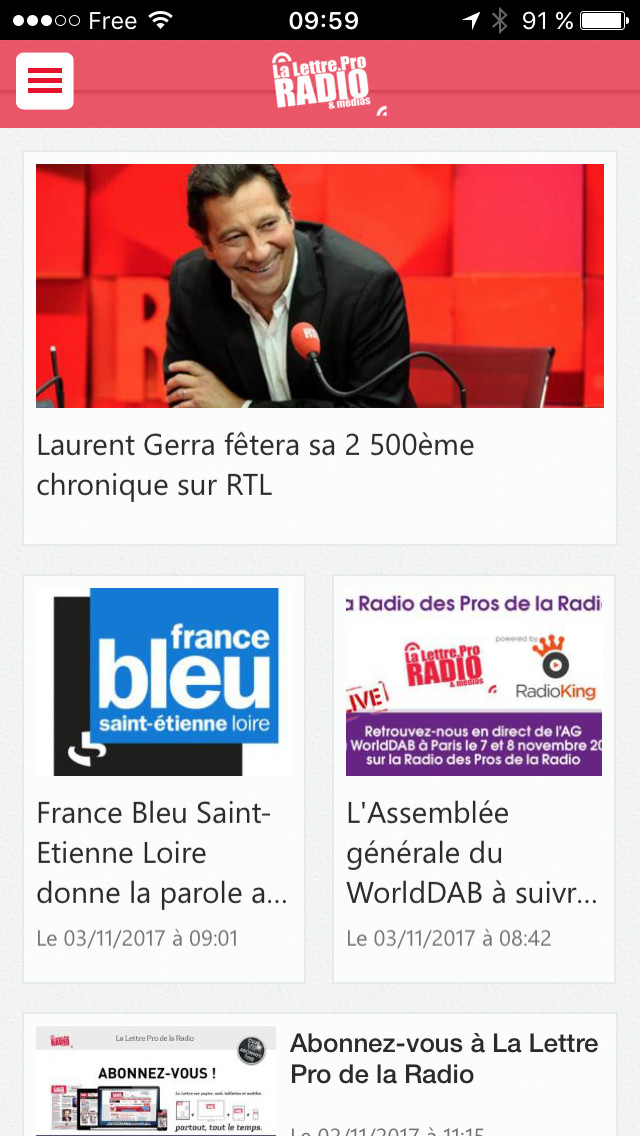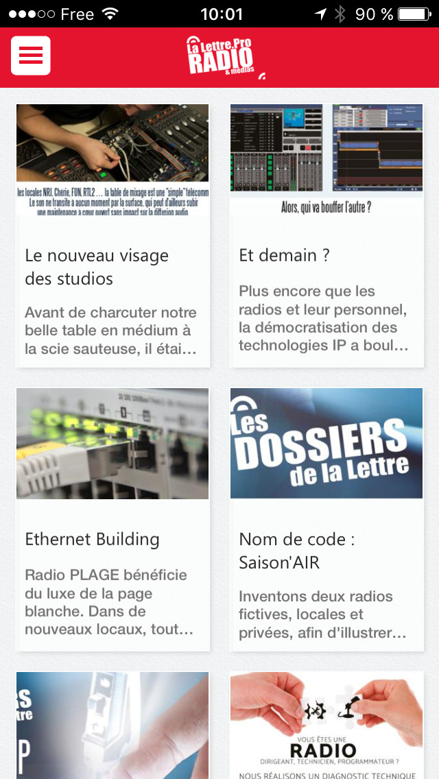 L’application, en lien direct avec le magazine, permet donc de suivre en temps réel toute l’actualité quotidienne de la radio. Sous la forme d’articles, vous bénéficiez d’une vision et d’une analyse professionnelles de tous les secteurs de la radio : journalisme, nouveautés techniques et digitales, matériels, applications, programmation musicale, production, publicité audio, Imaging, emploi, consulting radio, invités, nominations, juridique, partenariats… Si vous activez les notifications Push, vous bénéficiez d’alertes en fonction de l’importance de l’actualité et des informations à caractère urgent.