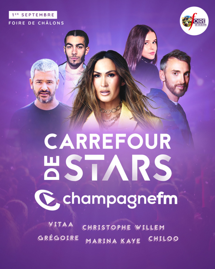 C'est le concert attendu par les auditeurs de la première radio musicale de Reims, Châlons-en-Champagne et de la Marne. Champagne FM donne rendez-vous à ses auditeurs pour un nouveau "Carrefour de Stars", le Vendredi 1er septembre à la Foire de Châlons. Sur scène : Christophe Willem, Grégoire, Chiloo, Marina Kaye et Vitaa.Brulhatour est le rédacteur en chef du magazine La Lettre Pro de la Radio et le directeur associé... En savoir plus sur cet auteur
