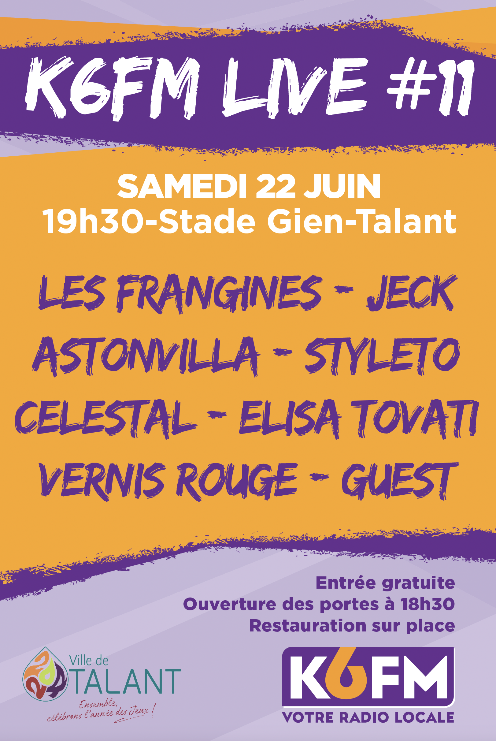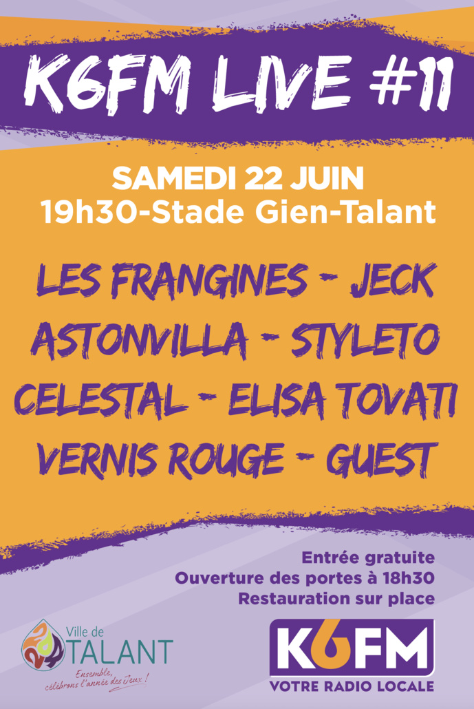 K6FM, première radio locale indépendante à Dijon et en Côte d'Or organisera un 11e K6FM Live le samedi 22 juin prochain à 18h30 à "La Grande fête" à Talant, ville de la métropole dijonnaise. L'équipe, conduite par Franck Pelloux, a convié Les Frangines, Jeck, Astonvilla, Styleto, Celestal, Élisa Tovati ou encore Vernis Rouge...Brulhatour est le rédacteur en chef du magazine La Lettre Pro de la Radio et le directeur associé... En savoir plus sur cet auteur