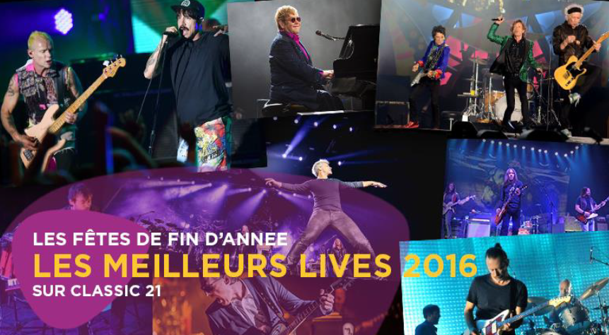 Pour les fêtes de fin d’année, Classic 21 offre les meilleurs lives 2016. Les Rolling Stones, Bon Jovi, les Red Hot Chili Peppers, Puggy, Radiohead, et bien d’autres concerts exceptionnels et exclusifs sont proposés durant cette période. Place également à la musique, la détente et la bonne humeur avec une programmation cocoon pour les fêtes avec Winter Hits, émission où les auditeurs pourront choisir eux-mêmes leurs titres préférés et le top 100 des meilleures sorties de cette année.
