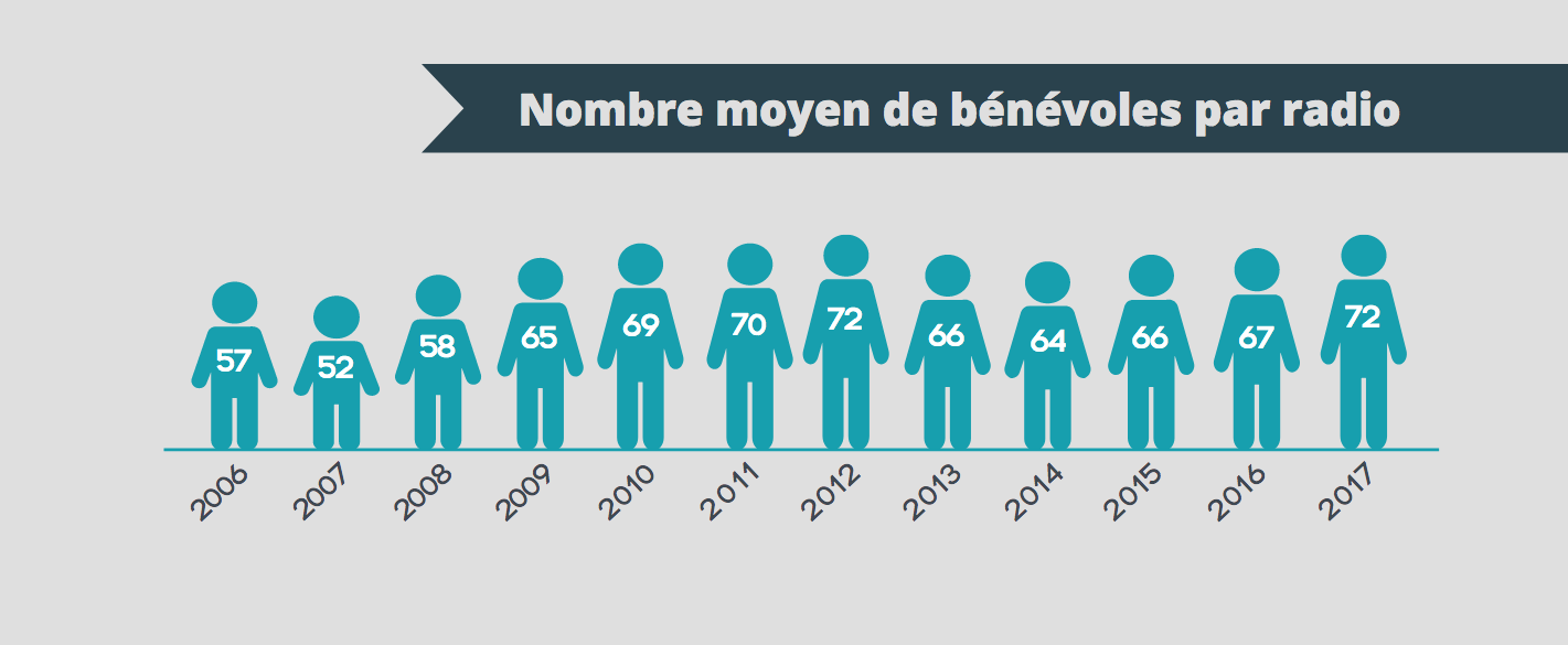 Les radios ont su malgré tout mobiliser leurs réseaux en enregistrant une hausse du bénévolat, des cotisations et des dons (sur les 21 radios de la FRAP, 13 ont reçu des dons en 2017).