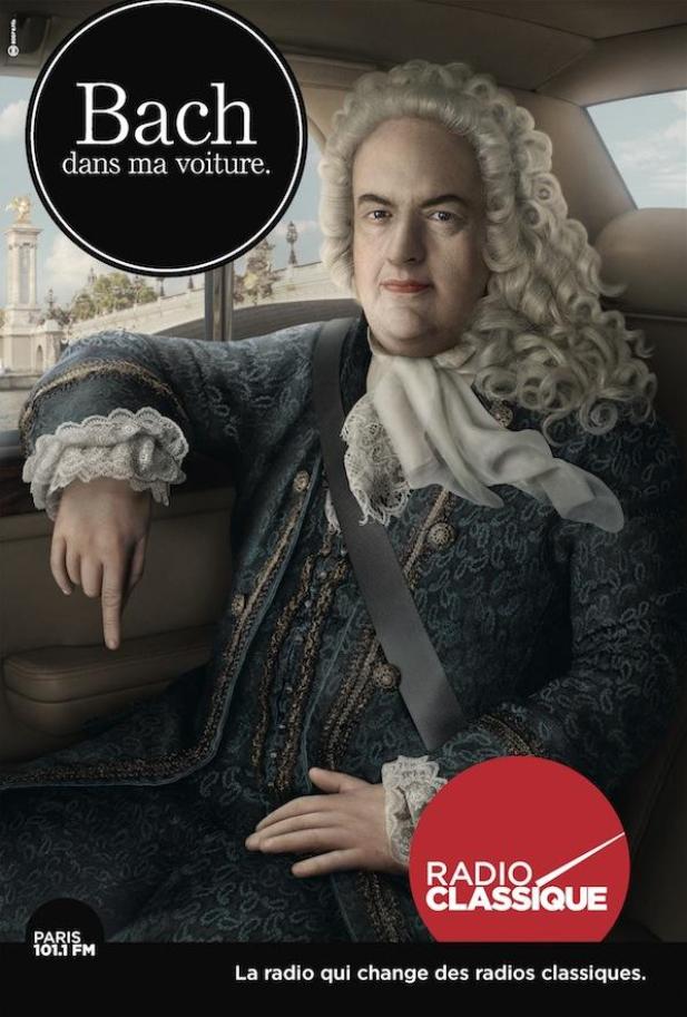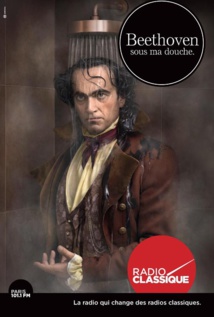 Deux affiches sont prévues dans un premier temps. Une donc avec Beethoven sous la douche, l’autre avec Bach, dans une voiture. L’accroche, "Radio Classique, la radio qui change des radios classiques" utilise volontairement trois fois le mot radio. "C’est volontaire".