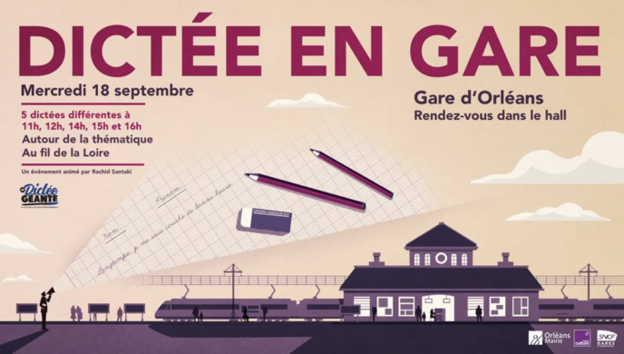 Les auditeurs ont rendez-vous dans le hall de la gare d'Orléans, le mercredi 18 septembre à 11h, 12h, 14h, 15h et 16h. Cinq dictées différentes sur la thématique "Au fil de la Loire" en écho au Festival de Loire (qui aura lieu du 24 au 28 septembre 2025 à Orléans) seront proposées aux auditeurs. Cette journée organisée en accès libre et gratuit et s'adresse à tous les publics.