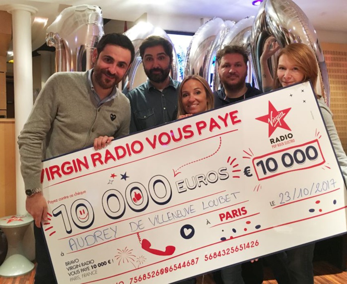 Audrey a 35 ans, travaille dans la logistique à l'aéroport de Nice et habite à Villeneuve-Loubet dans les Alpes-Maritimes. Lorsqu'elle a entendu "LE" signal hier matin à 8h38, elle était à son bureau. Elle écoutait Virgin Radio et s'est précipitée sur son téléphone. Quelques secondes plus tard, sans le savoir, elle était à l'antenne et parlait à Camille Combal. Lorsqu'elle a entendu toute l'équipe en studio l'applaudir, elle a compris qu'elle était la première gagnante de 10 000 euros. Avec cet argent, elle va d'abord gâter son petit garçon de neuf ans, puis peut-être changer de voiture ou s'offrir un super week-end dans un parc d'attractions.