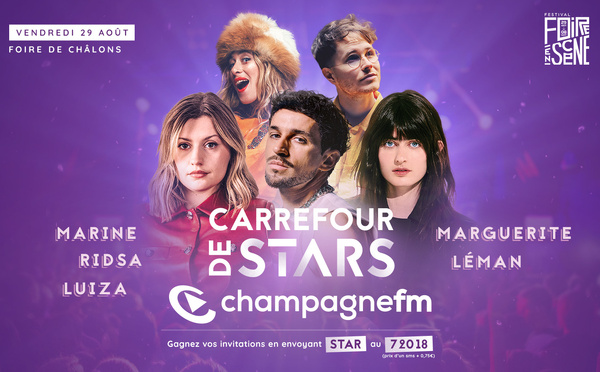La première radio régionale de Champagne-Ardenne ouvre sa saison avec un événement fédérateur : le premier "Carrefour de Stars", organisé ce vendredi 29 août sur la scène de la Foire de Châlons. Champagne FM réunira Marguerite, Luiza, Ridsa, Léman et Marine pour un concert gratuit, présenté par les animateurs de “La Famille”, Jess et Ruben.