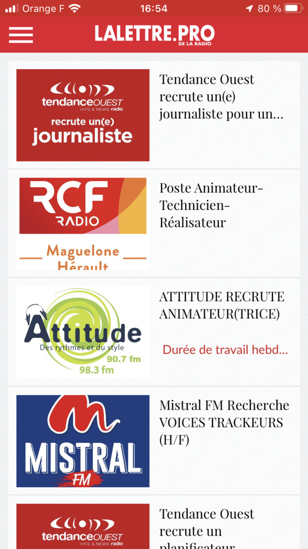 L’application de La Lettre Pro de la Radio permet donc de suivre en temps réel toute l’actualité quotidienne de la radio. Sous la forme d’articles, vous bénéficiez d’une vision et d’une analyse professionnelles de tous les secteurs de la radio : journalisme, nouveautés techniques et digitales, matériels, applications, programmation musicale, production, publicité audio, Imaging, emploi, consulting radio, invités, nominations, juridique, partenariats…