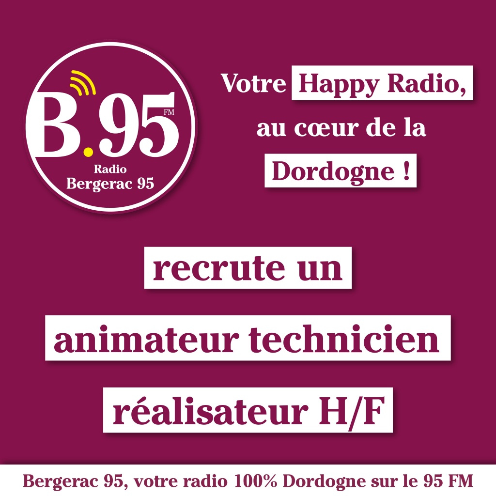 Fin 2023, la radio va mettre en service une 2ème fréquence FM à Périgueux, et changer de nom pour s’appeler HAPPY RADIO. HAPPY RADIO va conserver son ADN de proximité. Son but : être le haut parleur du Périgord, avec un programme rythmé par les infos locales, des chroniques, des bons plans, de la musique et beaucoup de bonne humeur ! Missions principales : Sous la direction du directeur d’antenne, vous animerez une ou plusieurs tranches du programme. Vous effectuerez au quotidien la gestion des horloges, la programmation des rubriques et la programmation publicitaire. - Mise en œuvre du contenu de la radio - Conception et animation d’émissions et de rubriques locales - Programmation des émissions et de la publicité - Gestion des jeux antenne - Interview d’invités - Animation des réseaux sociaux Profil souhaité : - BTS, IUT, école de radio, de journalisme... - Aisance à l’antenne - Sérieux - Dynamisme - Autonomie - Une expérience sur le logiciel Winmedia serait un plus - Bonne humeur exigée ! Les avantages : - Formation initiale pour bien démarrer - Accompagnement par le directeur d’antenne et l’équipe - Une radio en plein essor avec bientôt une nouvelle fréquence à Périgueux - Prochainement de nouveaux locaux avec un studio flambant neuf - Mutuelle d’entreprise et comité d’entreprise - Une région attrayante avec un patrimoine culturel et gastronomique Localisation : Bergerac (24) Date : septembre 2023 Candidature, CV et démo : recrutement@bergerac95.fr Annonce clôturée