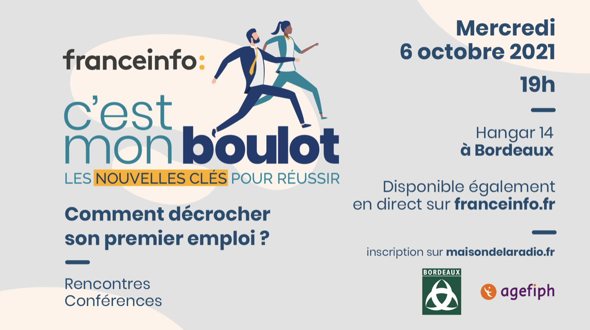 Presque deux ans après le début de la crise sanitaire qui a bouleversé le monde du travail, comment trouver son premier emploi et entrer sur le marché du travail ? Une nouvelle édition consacrée aux jeunes diplômés qui s’installe à Bordeaux, le mercredi 6 octobre à 19h. Conseils concrets et utiles, secteurs qui recrutent, partages d’expérience… les auditeurs pourront échanger avec les acteurs du monde du travail de la région Nouvelle-Aquitaine au cours d’une soirée animée par Philippe Duport. Une conférence à vivre en présentiel au Hangar 14 et à suivre en direct et en streaming sur franceinfo.fr.