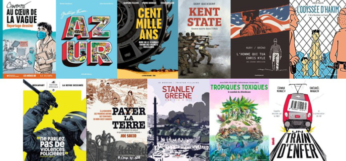 Après Étienne Davodeau, Tignous, Marjane Satrapi, Emmanuel Lepage, Luz et Vincent Jarousseau en 2020… Quel auteur va remporter le prix franceinfo de la BD d’actualité et de reportage 2021 ? Présidé par Jean-Philippe Baille, directeur de la rédaction de franceinfo, les jurés de cette 27e édition sont Augustin Arrivé (présentateur), Noémie Bonnin (journaliste numérique), Marina Cabiten (rédactrice en chef en charge de l'audio numérique), Frédérique Djian (assistante d'édition), Benjamin Illy (reporter), Fanny Lechevestrier (journaliste Sport), Grégoire Lecalot (journaliste Économie) et Jean-Christophe Ogier (spécialiste Bande Dessinée).