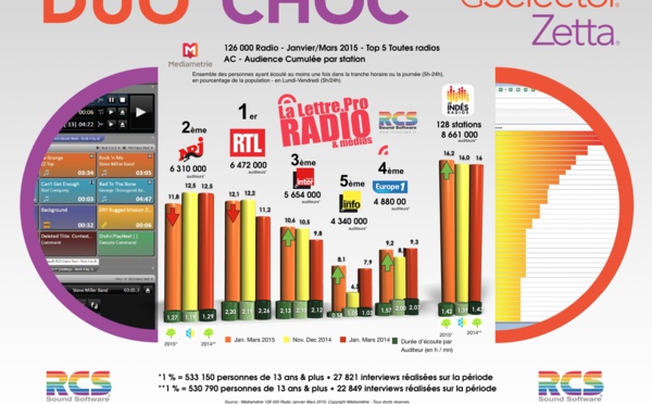 TOP 5 Musicales - Diagramme exclusif LLP/RCS GSelector-Zetta - Janvier-Mars 2015 - Le 15/04/2015 à 08:38TOP 5 Généralistes - Diagramme exclusif LLP/RCS GSelector-Zetta - Janvier-Mars 2015 - Le 15/04/2015 à 08:24TOP 5 toutes radios - Diagramme exclusif LLP/RCS GSelector-Zetta - Janvier-Mars 2015 - Le 15/04/2015 à 08:17Les résultats de la 126 000 Médiamétrie Radio - Janvier-Mars 2015 - Le 15/04/2015 à 08:00