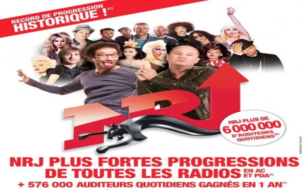 NRJ s'affirme La station indique dans un communiqué un record historique. Plus de 6 000 000 d'auditeurs quotidiens, les plus fortes progressions de toutes les radios en AC et en PDA et un gain de 576 000 auditeurs quotidiens sur un an. NRJ parle de succès total de toute la grille. Deux...