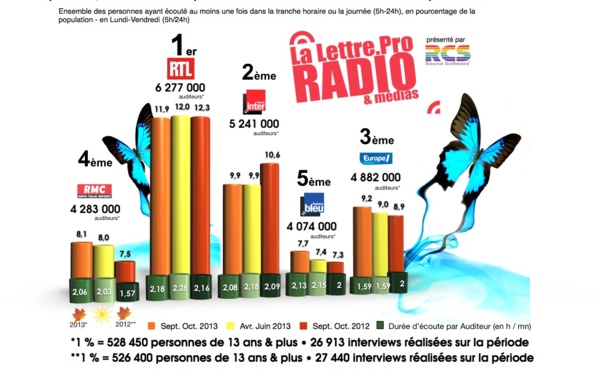 "Le premier sondage de la saison 2013-2014 confirme le leadership de RTL en Part d’Audience, en Quart d’Heure Moyen et en Durée d’Écoute" indique ce matin fièrement RTL.