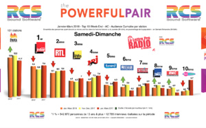 Diagramme exclusif LLP/RCS GSelector 4 - TOP 10 toutes radios Samedi-Dimanche - 126 000 Radio Janvier-Mars 201819/04/2018 | janvier-mars 2018