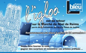 Comme tous les ans, France Bleu Champagne-Ardenne prend ses quartiers d'hiver, sur le parvis de la Cathédrale derrière le Palais de Justice, sous "L'Igloo", depuis le 24 novembre et jusqu'au 24 décembre. Un mois de délocalisation quotidienne au coeur du marché de Noël de Reims.
