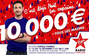 Événement sur Virgin Radio dès lundi : chaque matin, Camille Combal offrira, toute la semaine, 10 000 euros à un auditeur. Du 12 au 16 décembre, Camille Combal offrira, comme tous les matins, un loyer toutes les heures (à 6h20, 7h20, 8h20, 9h20) et 10 000 € supplémentaires pendant la matinale "Virgin Tonic", entre 6h et 10h.