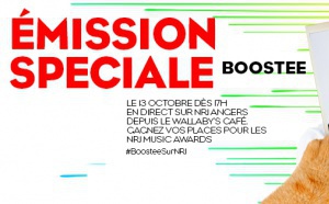 Ce vendredi 13 octobre, NRJ s’installe avec Boostee à Angers depuis le Wallaby's Café. NRJ a choisi la ville de Angers pour offrir en exclusivité à ses auditeurs deux places pour assister aux NRJ Music Awards, samedi 4 novembre en direct du Palais des Festivals et des Congrès de Cannes.
