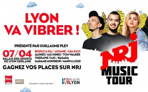 Lyon va vibrer samedi 8 avril avec la plus grande tournée musicale NRJ Music Tour. Pour la 5e année consécutive, NRJ offre aux Lyonnais un concert gratuit au Palais des Sports de Lyon Gerland à partir de 20h15 avec Shy'M, Ridsa, David Carreira, Vitaa, Ofenbach, Boostee, Willy William, Jasmine Thompson, Kameleon, Arcadian, Nassi, Alma et Jay Style.